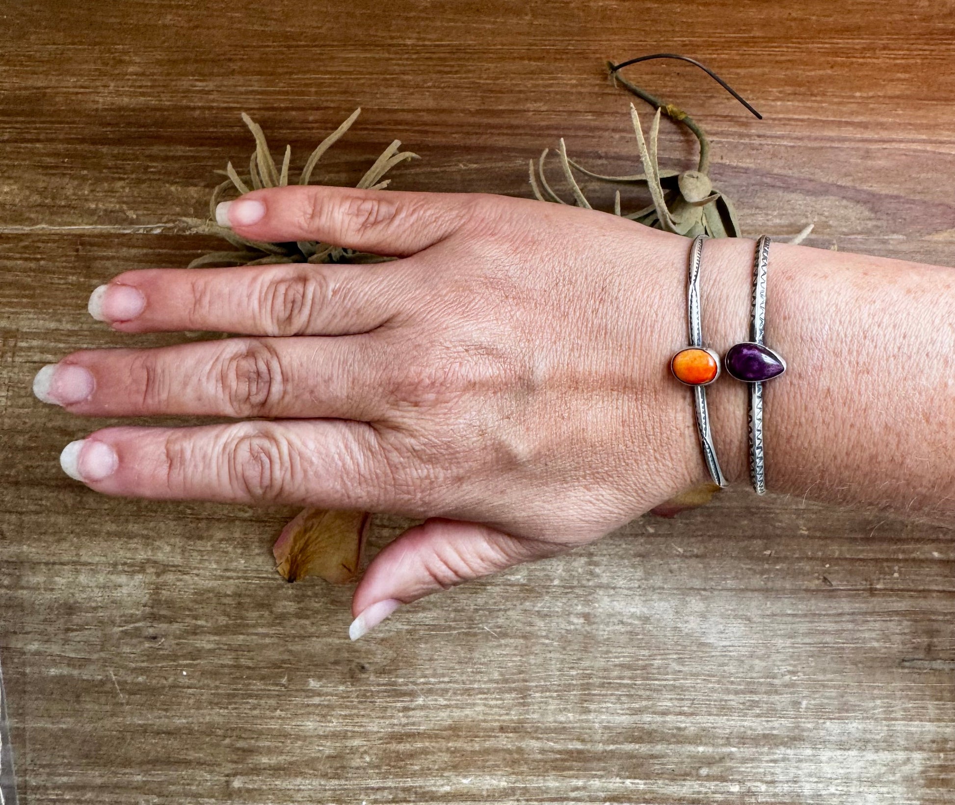 Spiny Oyster Cuff – Orange or Purple – G. Rios, Sterling Silver